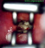 Osservazione del canale cervicale con la pinza di Kogan che evidenzia una alterazione di alto grado nel canale cervicale con tessuto cheratosico e friabile.In questo caso, in considerazione che la lesione si addentra nel canale cervicale, bisogna indagare anche in quel siti, oltre che sulla esocervice. |